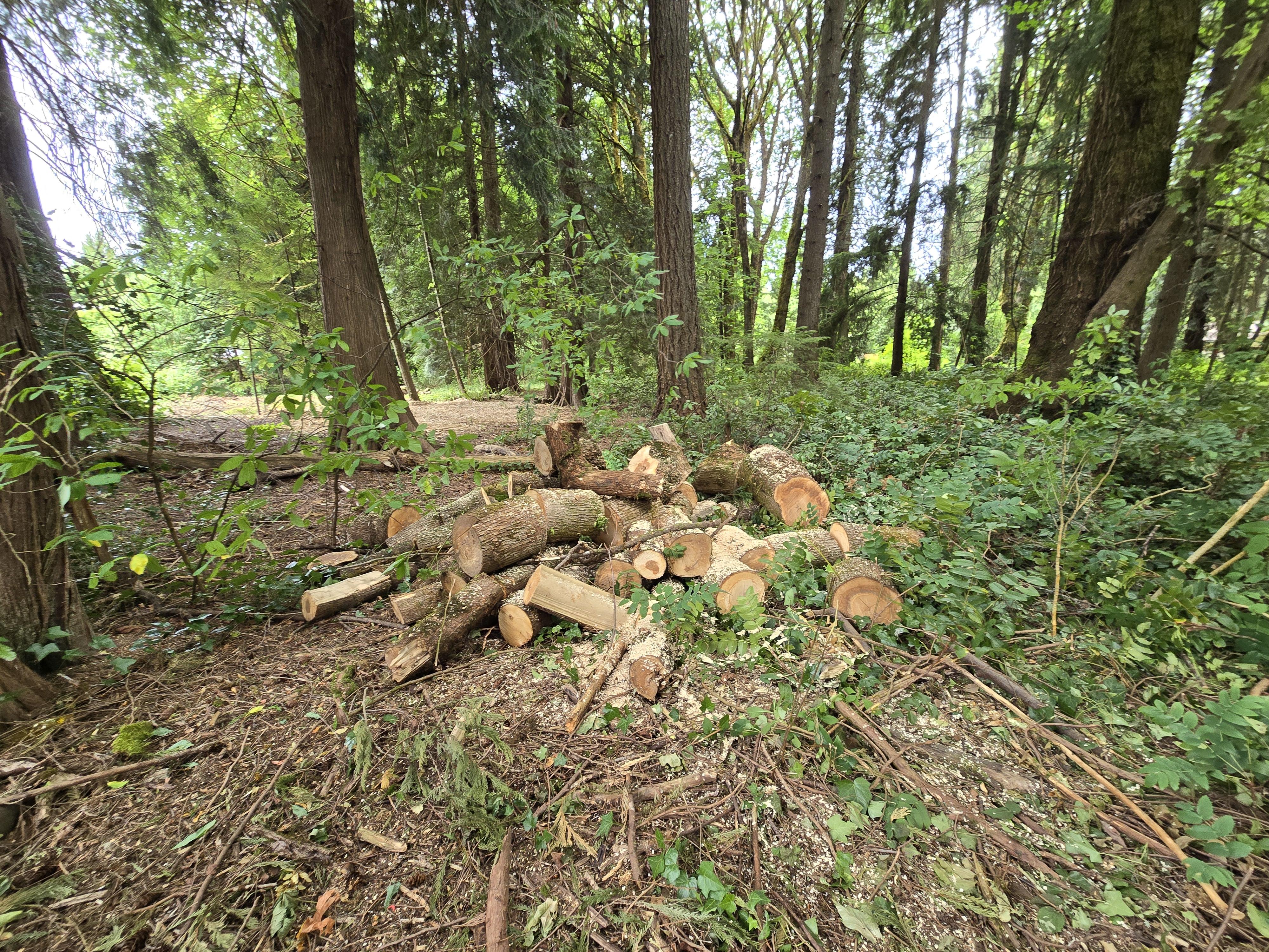 In May 2025, through our partnership with the Thurston Conservation District and the Washington State Department of Natural Resources, we were provided, free of charge to WPOA, a crew to chip up a considerable amount of limbs and cut up the remaining wood for homeowners who wanted to collect it. This area is in the park between Donnelly Dr. and Wilderness Dr.
